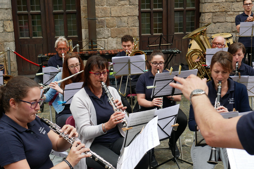 Die 38 Musiker/innen im Alter von 10 bis 80 Jahren spielten im Auftrag der Deutschsprachigen Gemeinschaft und unter der Leitung von Guido Niessen alles, was man mit einer Harmonie so spielen kann, und von Ed Sheeran über You’re never walk alone, Concordia bis hin zu Stromae und aktuellen Poptiteln war alles dabei. Das Konzert war open air und frei, so dass es für alle Touristen und Gäste die Gelegenheit war, zu flanieren, zu verweilen, sich auf eine Bank zu setzen und den Klängen des Musikvereins zuzuhören.
